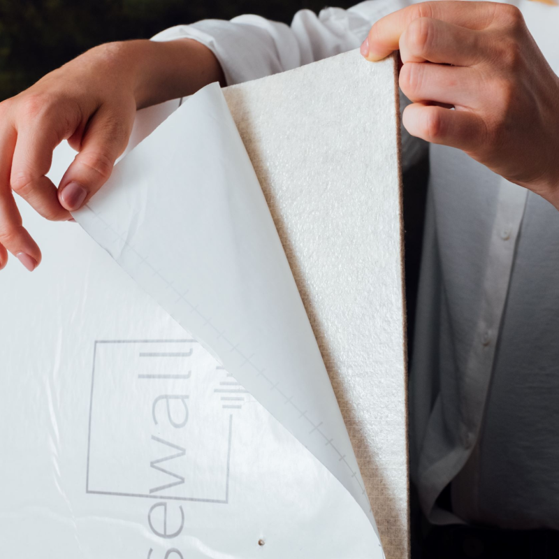 Easewall akoestisch behang is een duurzaam product gemaakt van 100% gerecycled akoestisch vilt. Aan de achterkant is een unieke zelfklevende laag toegevoegd, waardoor installatie eenvoudig is.